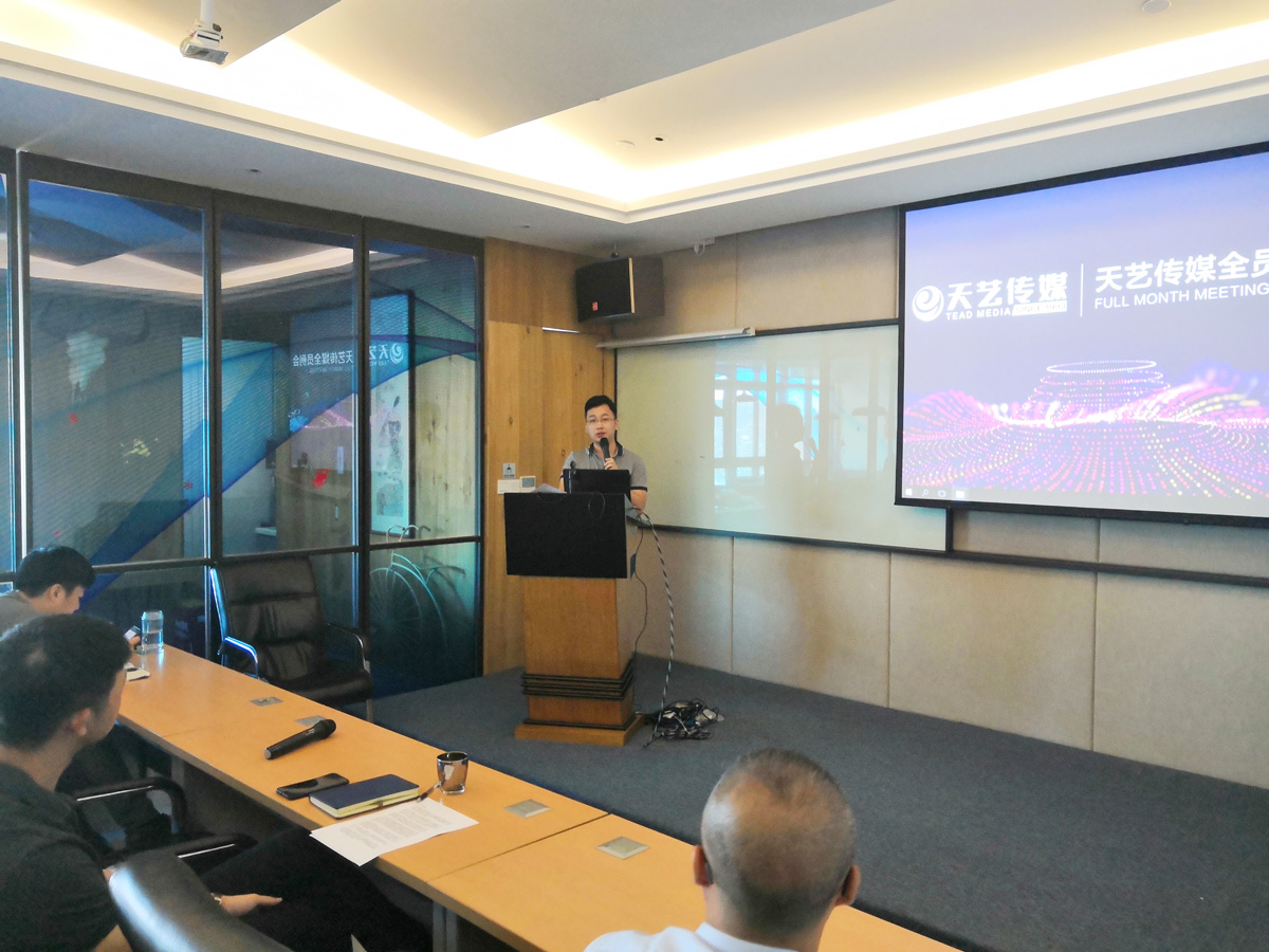 林一城總經(jīng)理在會(huì)議中總結(jié)了在過去的半年里天藝傳媒所取得的成績(jī),肯定了公司所有員工的辛勤努力與付出,并感恩為天藝傳媒這半年來每一步的發(fā)展默默奉獻(xiàn)的每一位同仁。