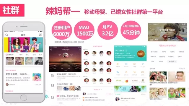辣媽幫創(chuàng)立于2012年5月,僅用了4年時(shí)間,便擁有了6000萬的用戶。辣媽幫致力于打造全新母嬰生態(tài)鏈,旗下四大應(yīng)用“孕期伴侶-辣媽幫-荷花親子-辣媽商城”涵蓋了女性“育兒-生活-情感-消費(fèi)”四大領(lǐng)域。